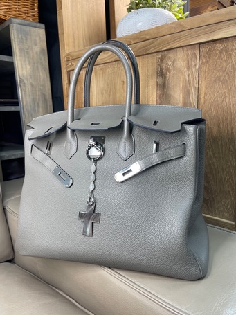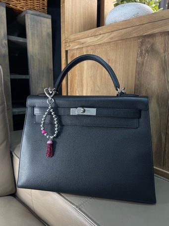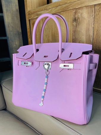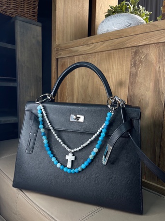 Украшение на сумку с натуральной шпинелью и культивированным жемчугом.