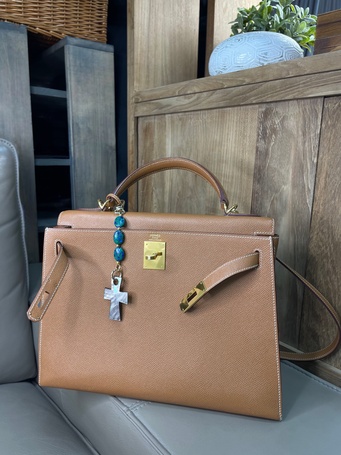 Украшение на сумку с натуральной шпинелью, культивированным жемчугом.