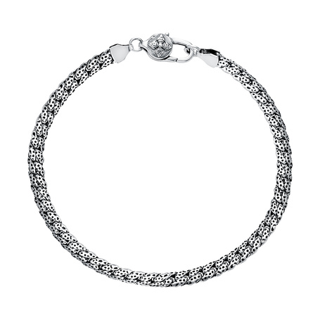 Браслет из серебра 925 пробы с фианитами и текстилем