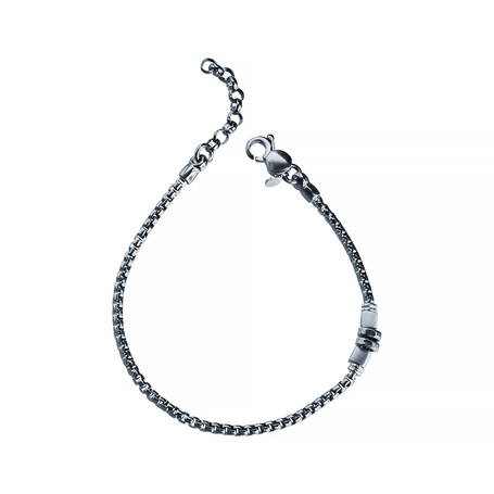 Браслет из стали с гематитами, кожей тельячьей и сталью