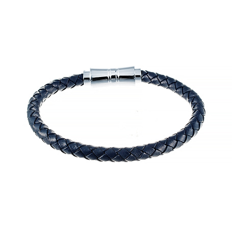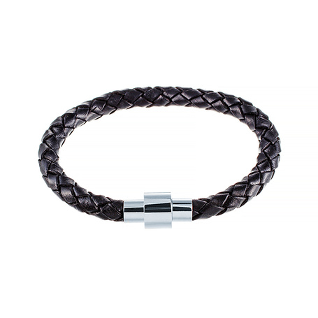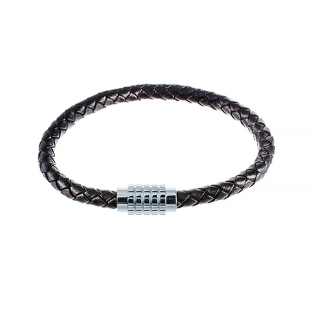 Браслет из стали с гематитами, кожей тельячьей и сталью мужской