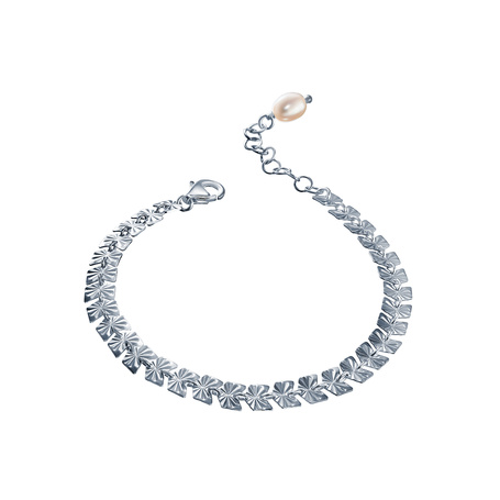 Браслет из серебра 925 пробы с фианитами и барочным жемчугом