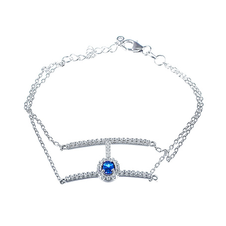 Браслет из серебра 925 пробы с фианитами и ювелирным стеклом