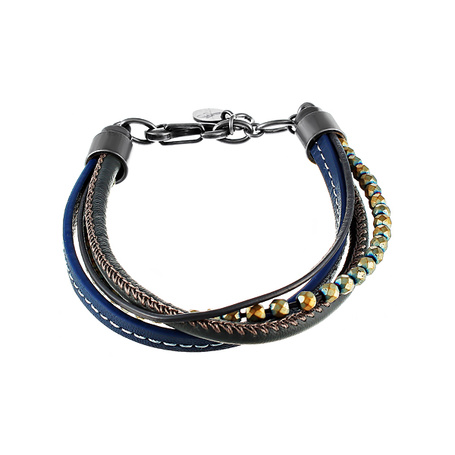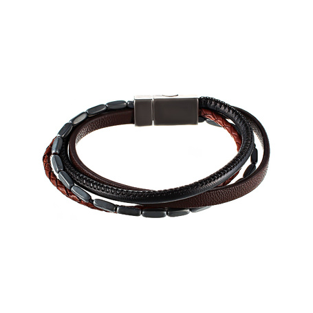Браслет из стали с гематитами, кожей тельячьей и сталью
