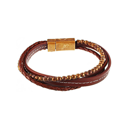 Браслет из стали с кожей тельячьей и гематитами
