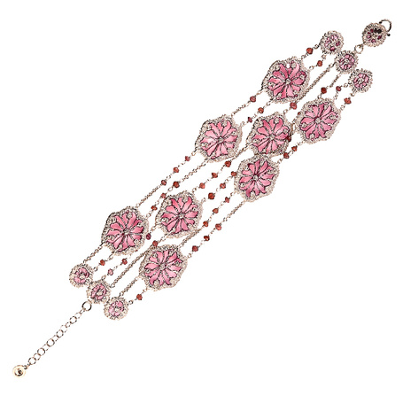 Браслет из серебра 925 пробы с гранатами и эмалями
