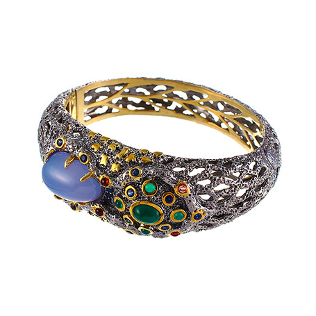 Браслет из серебра 925 пробы с халцедоном, сапфирами, гранатами выращенными и агатом