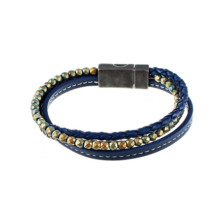 Браслет из стали с гематитами, кожей тельячьей и сталью