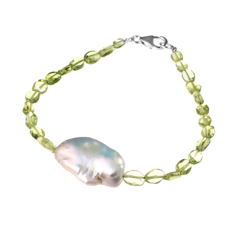 Браслет из серебра 925 пробы с перидотами, раухтопазами, кварцем и жемчугом