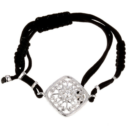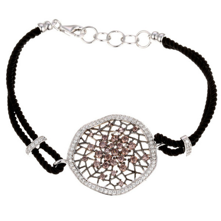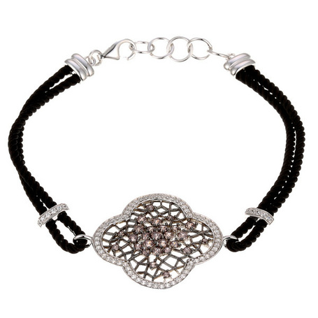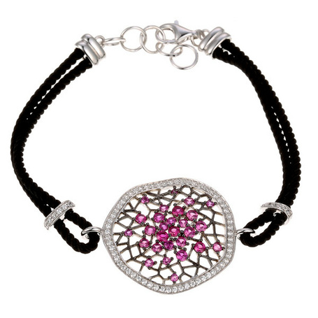 Браслет из серебра 925 пробы с фианитами и шнурком