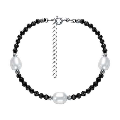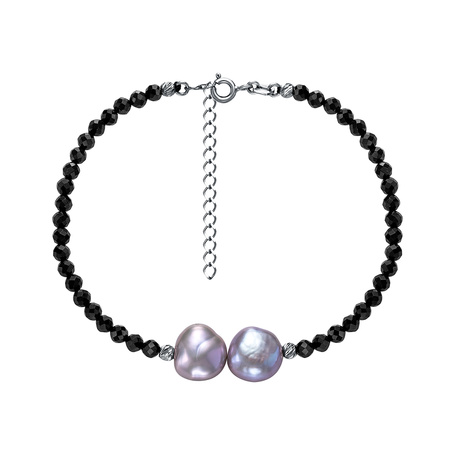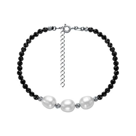 Браслет из серебра 925 пробы с шпинелью и жемчугами
