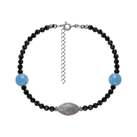 Браслет из серебра 925 пробы с шпинелью, лабрадоритами и аквамаринами