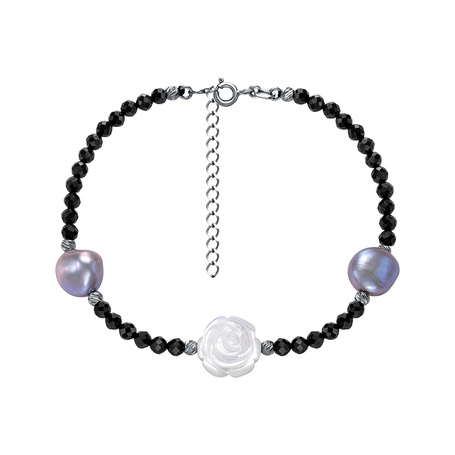 Браслет из серебра 925 пробы с шпинелью, жемчугами и перламутром