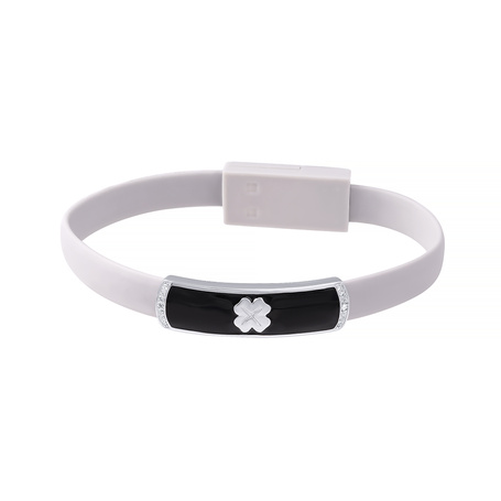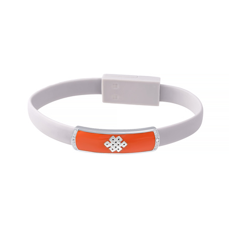 Браслет из серебра 925 пробы с эмалью, фианитами, силиконом и пластиком