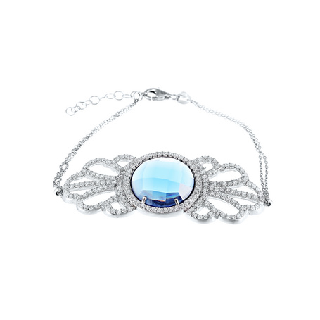 Браслет из серебра 925 пробы с фианитами и ювелирным стеклом