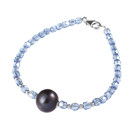 Браслет из серебра 925 пробы с жемчугами и ювелирным стеклом
