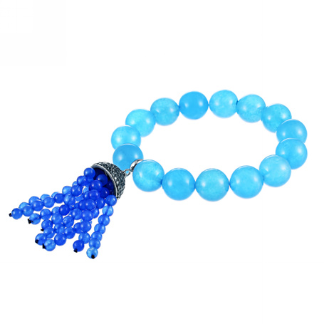 Браслет из серебра 925 пробы с эмалью, жадеитом и текстилем