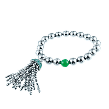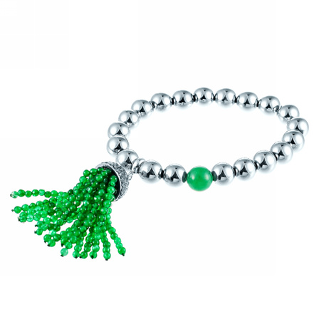Браслет из нет металла с жадеитом, гематитами и фианитами