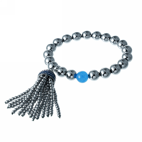 Браслет из нет металла с гематитами, жадеитом и фианитами