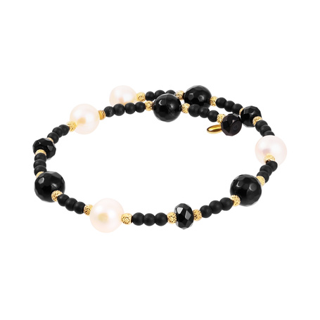 Браслет из серебра 925 пробы с ониксом и жемчугами