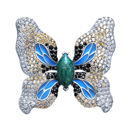 Брошь из серебра 925 пробы с хризоколлами, шпинелью, эмалью и фианитами