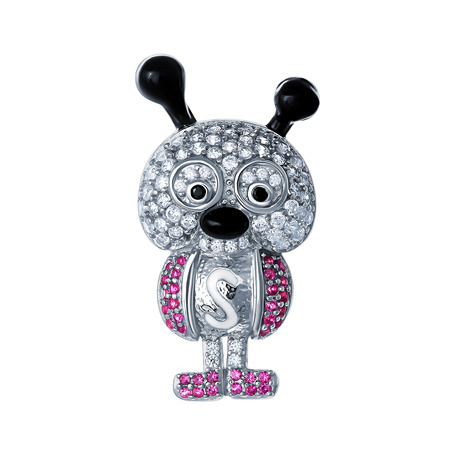 Брошь-подвеска из серебра 925 пробы с шпинелью, эмалью и фианитами