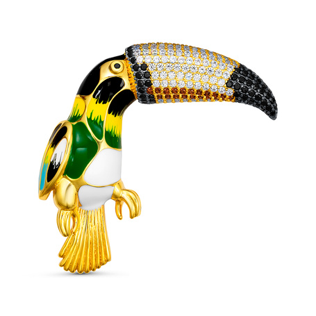 Брошь из серебра 925 пробы с фианитами, перидотами, гранатами и эмалью