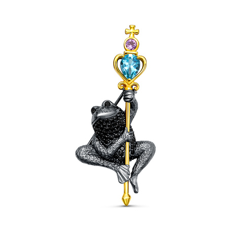 Брошь-подвеска из серебра 925 пробы с шпинелью, аметистами и топазами