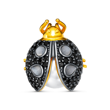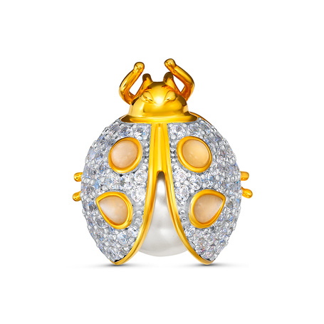 Брошь из серебра 925 пробы с жемчугом майорика, фианитами и лунным камнем