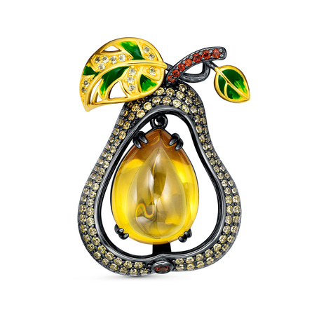 Брошь-подвеска из серебра 925 пробы с шпинелью синтетической, фианитами и цитринами