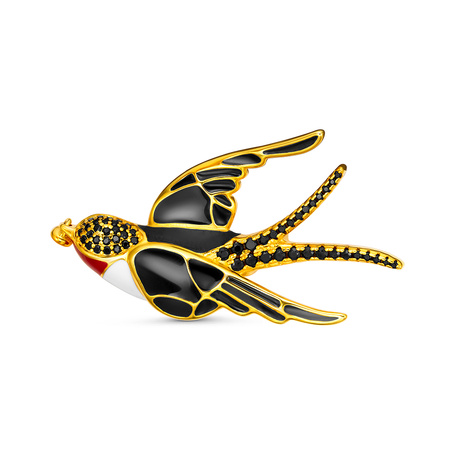 Брошь из серебра 925 пробы с шпинелью и эмалью