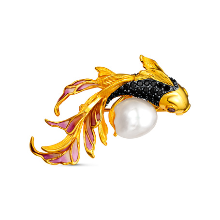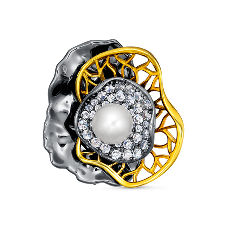 Брошь из серебра 925 пробы с фианитами и барочным жемчугом