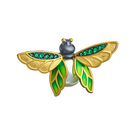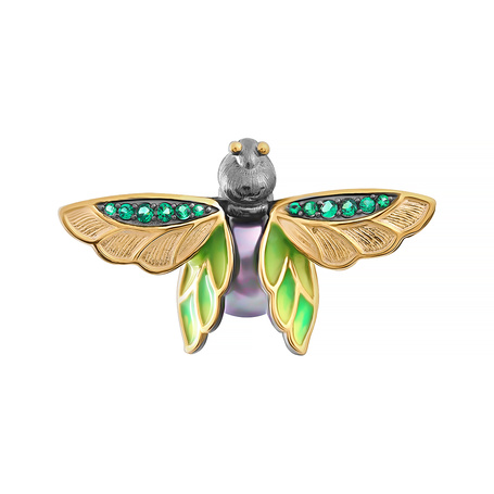 Брошь из серебра 925 пробы с жемчугом майорика, фианитами и эмалью