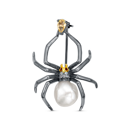 Брошь из серебра 925 пробы с цитринами, гранатами, топазами и жемчугами