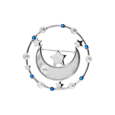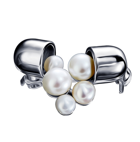 Брошь из серебра 925 пробы с перламутром, жемчугами и фианитами