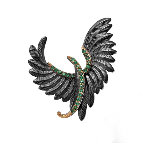 Брошь из серебра 925 пробы с гранатами и хромдиопсидом