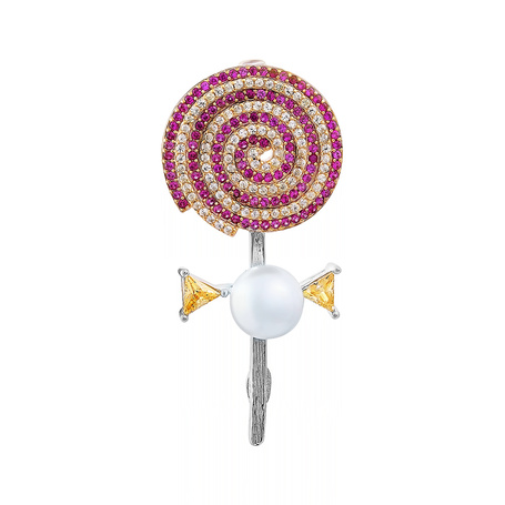 Брошь из серебра 925 пробы с фианитами и эмалью