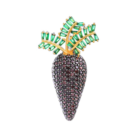 Брошь из серебра 925 пробы с гранатами, перидотами и фианитами