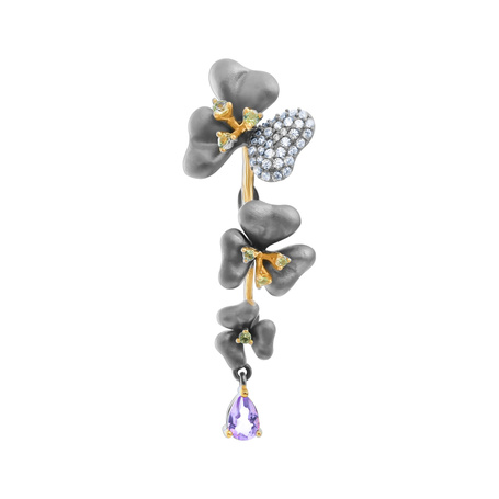 Брошь-подвеска из серебра 925 пробы с аметистами, перидотами и фианитами