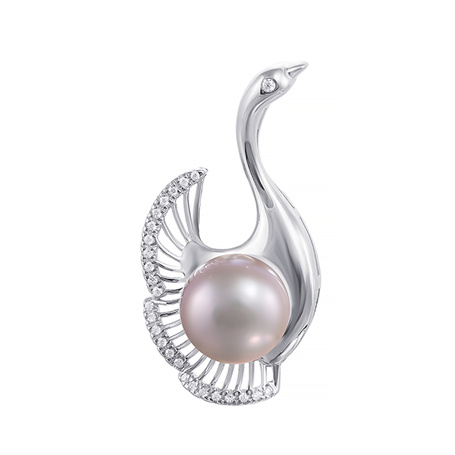 Брошь-подвеска из серебра 925 пробы с фианитами и жемчугом майорика