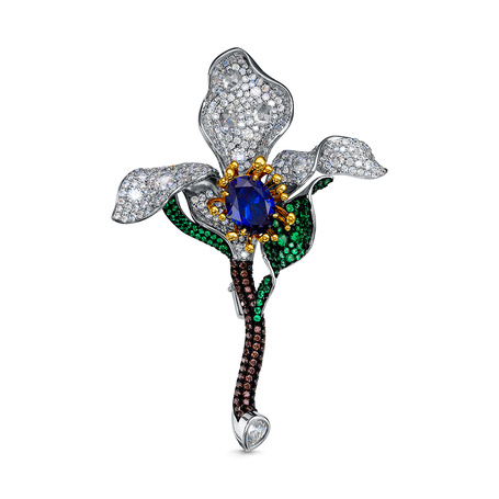 Брошь из серебра 925 пробы с фианитами и жемчугом майорика