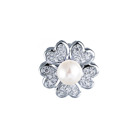 Брошь из серебра 925 пробы с фианитами и жемчугом майорика