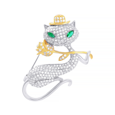 Брошь из серебра 925 пробы с эмалью, марказитами и фианитами