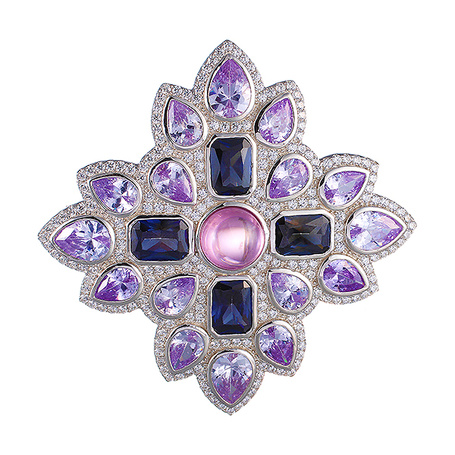 Брошь-подвеска из серебра 925 пробы с аметистами, шпинелью, фианитами, перидотами и раухтопазами
