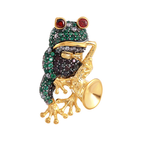 Брошь из серебра 925 пробы с фианитами и шпинелью