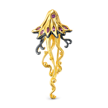 Брошь-подвеска из серебра 925 пробы с аметистами и шпинелью