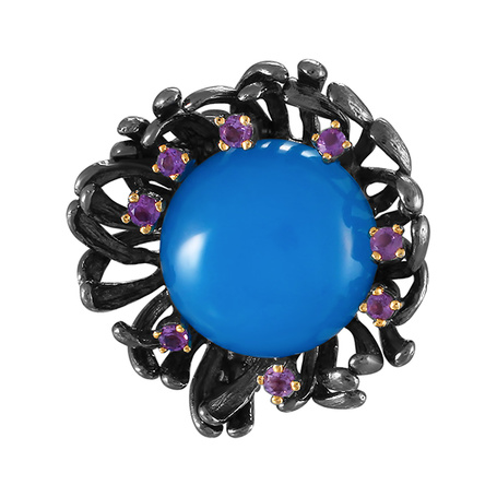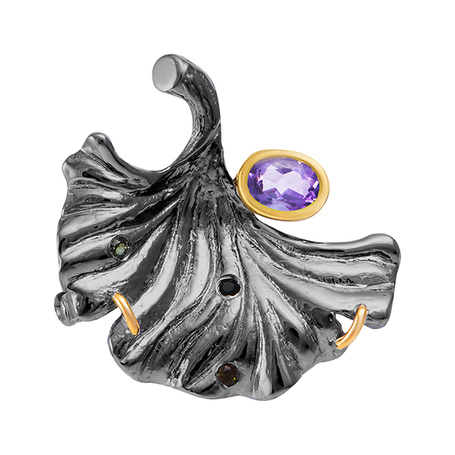 Брошь-подвеска из серебра 925 пробы с аметистами, топазами и эмалью