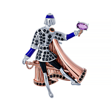 Брошь-подвеска из серебра 925 пробы с шпинелью, аметистами и эмалью