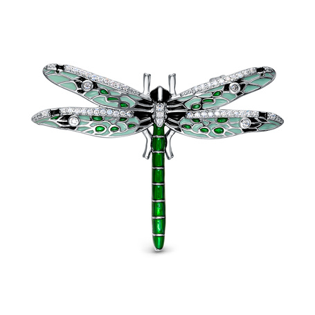 Брошь из серебра 925 пробы с шпинелью, эмалью и фианитами