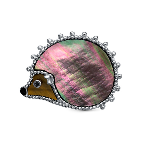Брошь из серебра 925 пробы с перламутром, ониксом и шпинелью